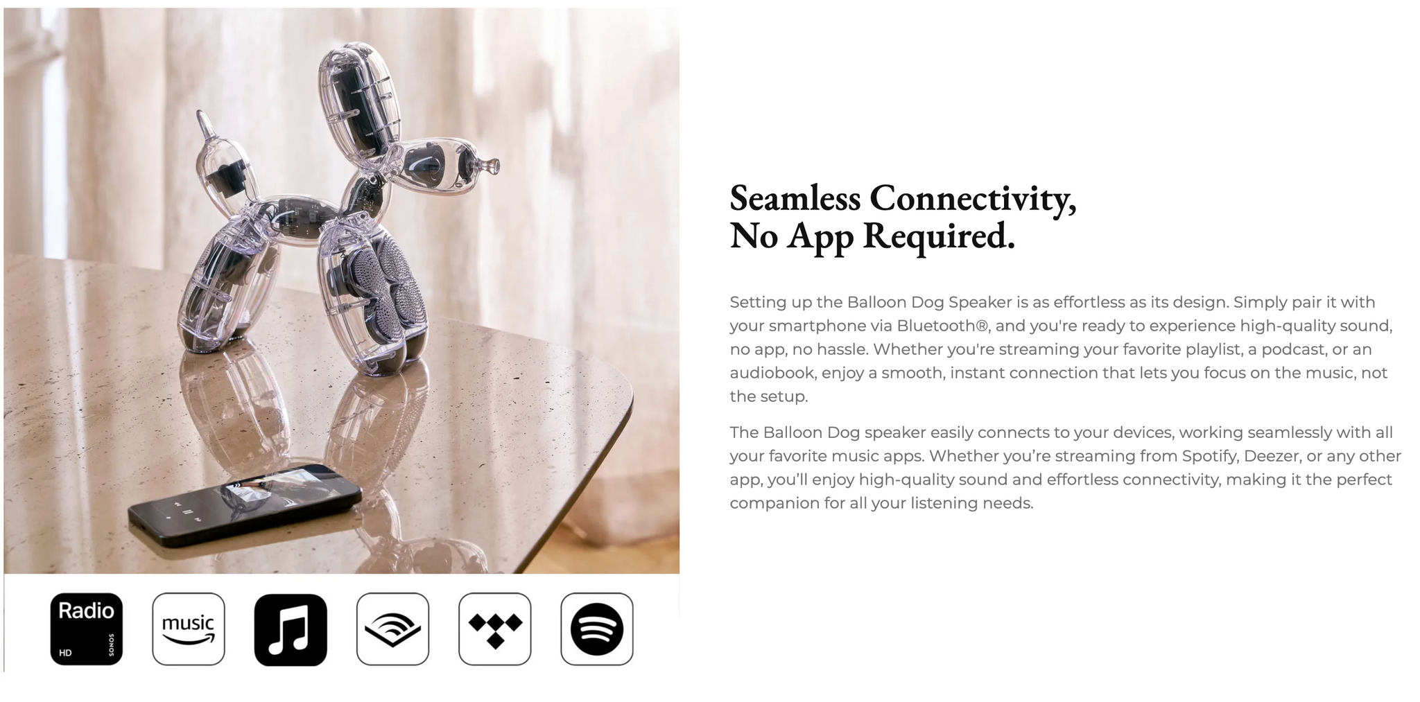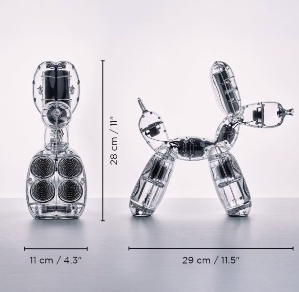 Mounted within the playful curves of the Balloon Dog Speaker, six active drivers and four passive radiators deliver a rich, immersive sound experience. Designed for exceptional clarity, deep bass, and balanced acoustics, this speaker transforms any space with studio-quality audio, all wrapped in an iconic work of art!