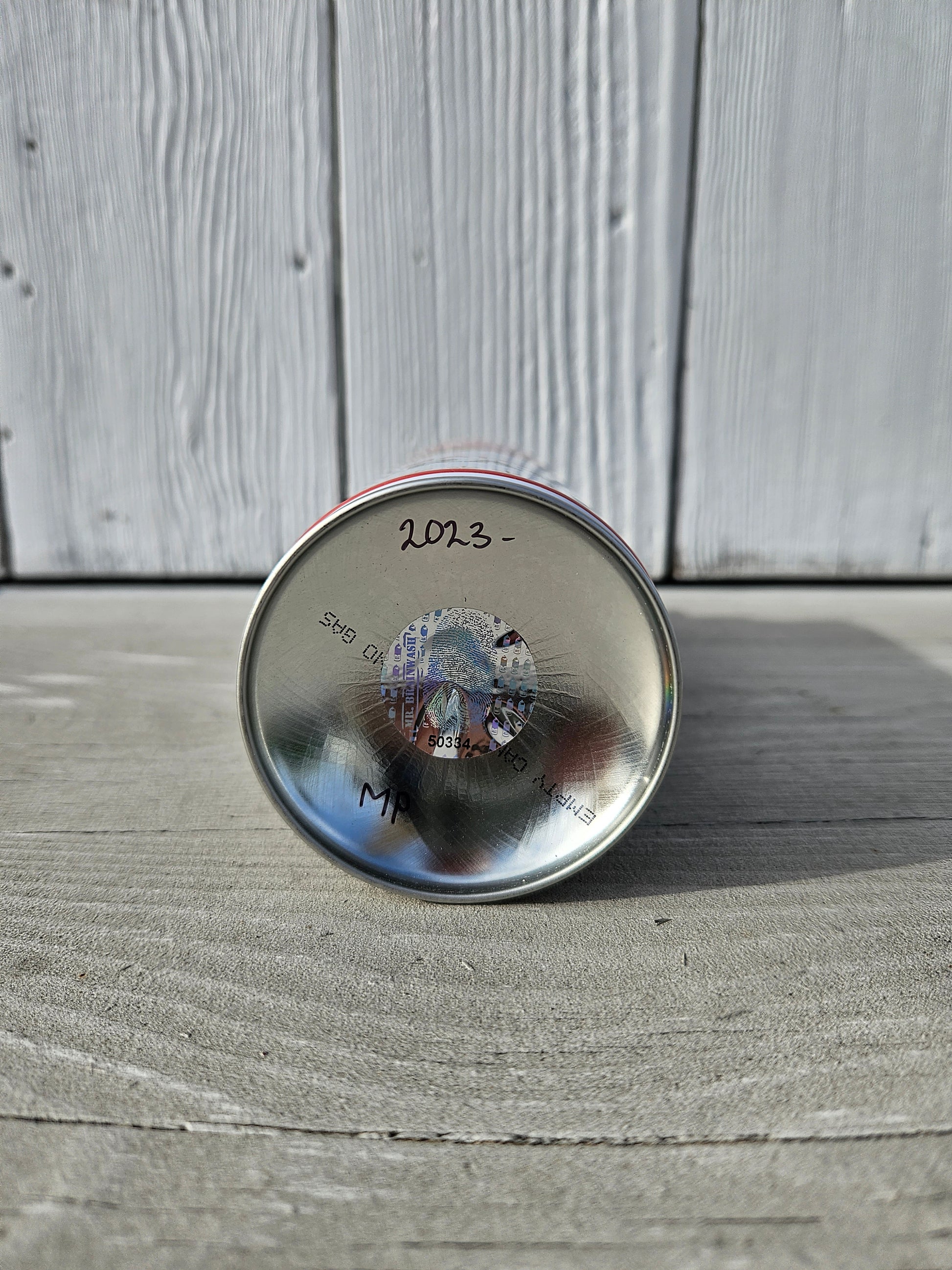 The can is empty of paint and gas