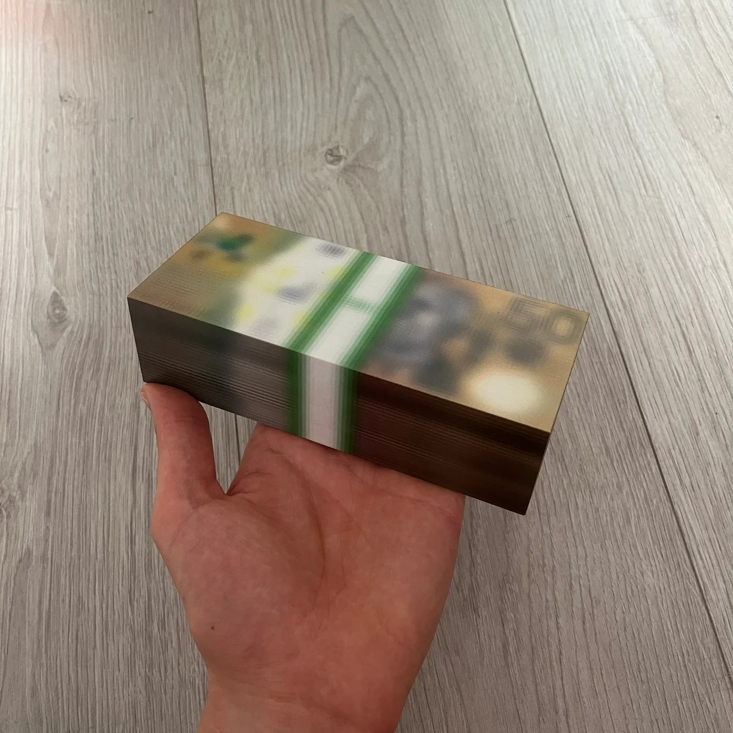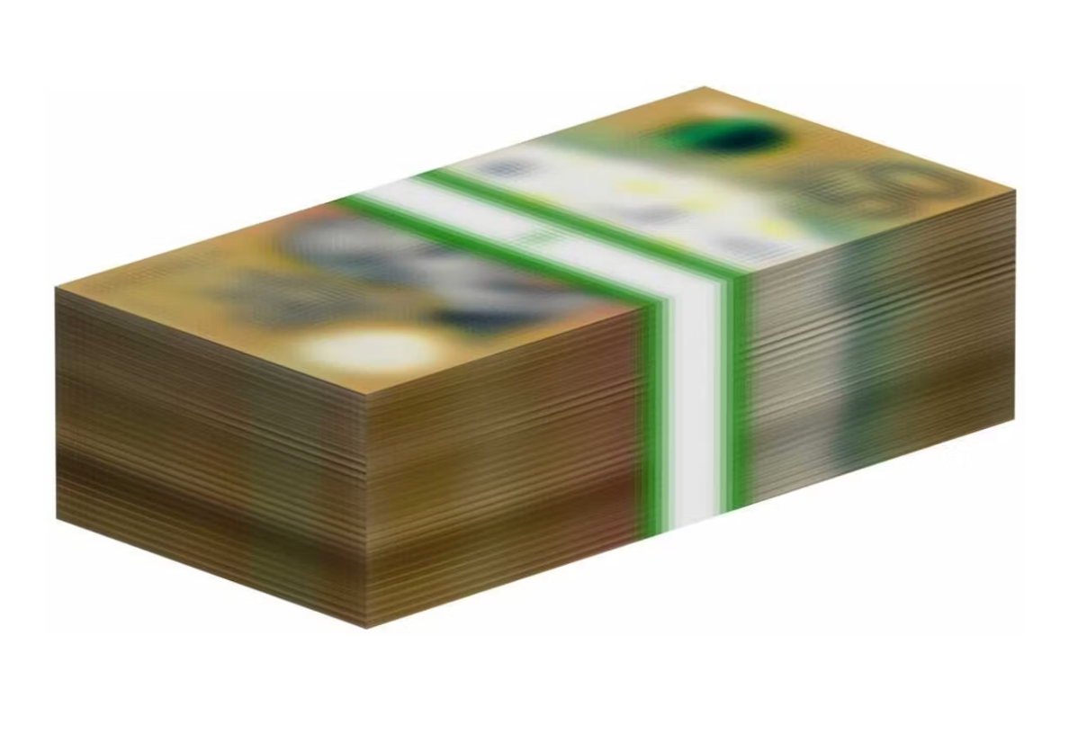 The MSCHF Blur A$50 AUD Figure appears to be a stack of A$50 notes that measures 16.5 x 8.2 x 4,5cm