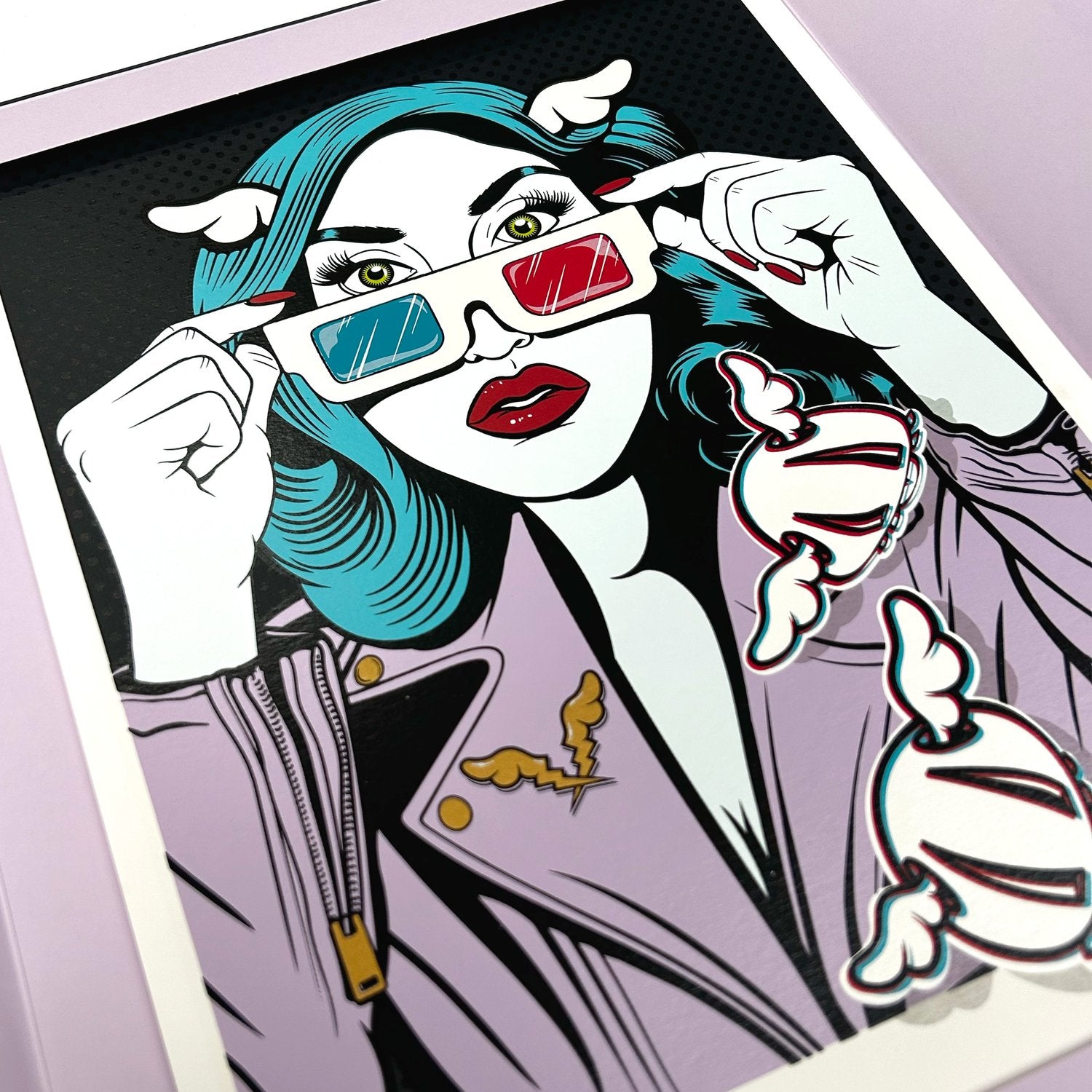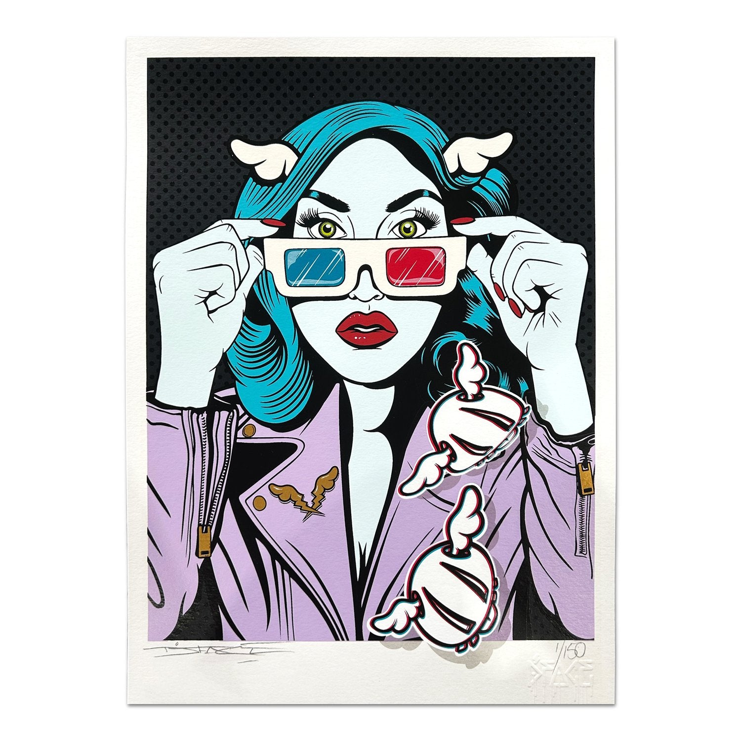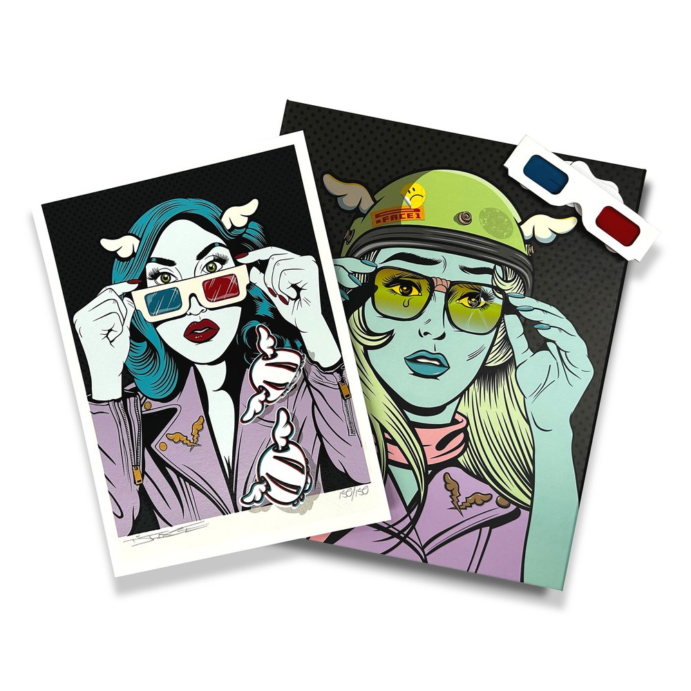 - a pair of 3D glasses personalized by D*Face allowing you to see the silkscreen print in relief